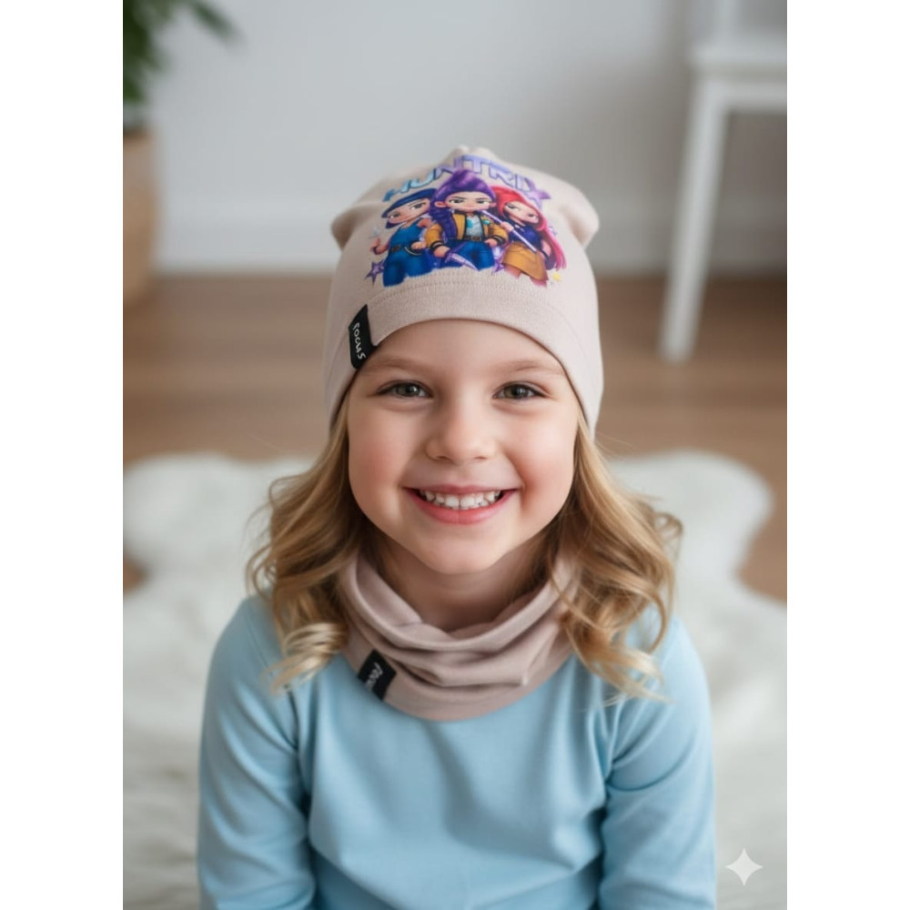 Czapka komin HUNTRIX K-POP DEMON HUNTERS zestaw bawełniany dla dziewczynki beż